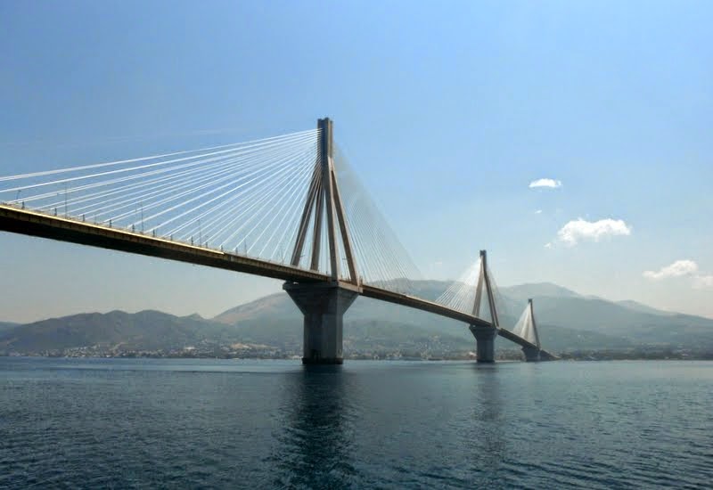 Vanaf de haven van Náfpaktos zien we de hoge Rio Antirio brug